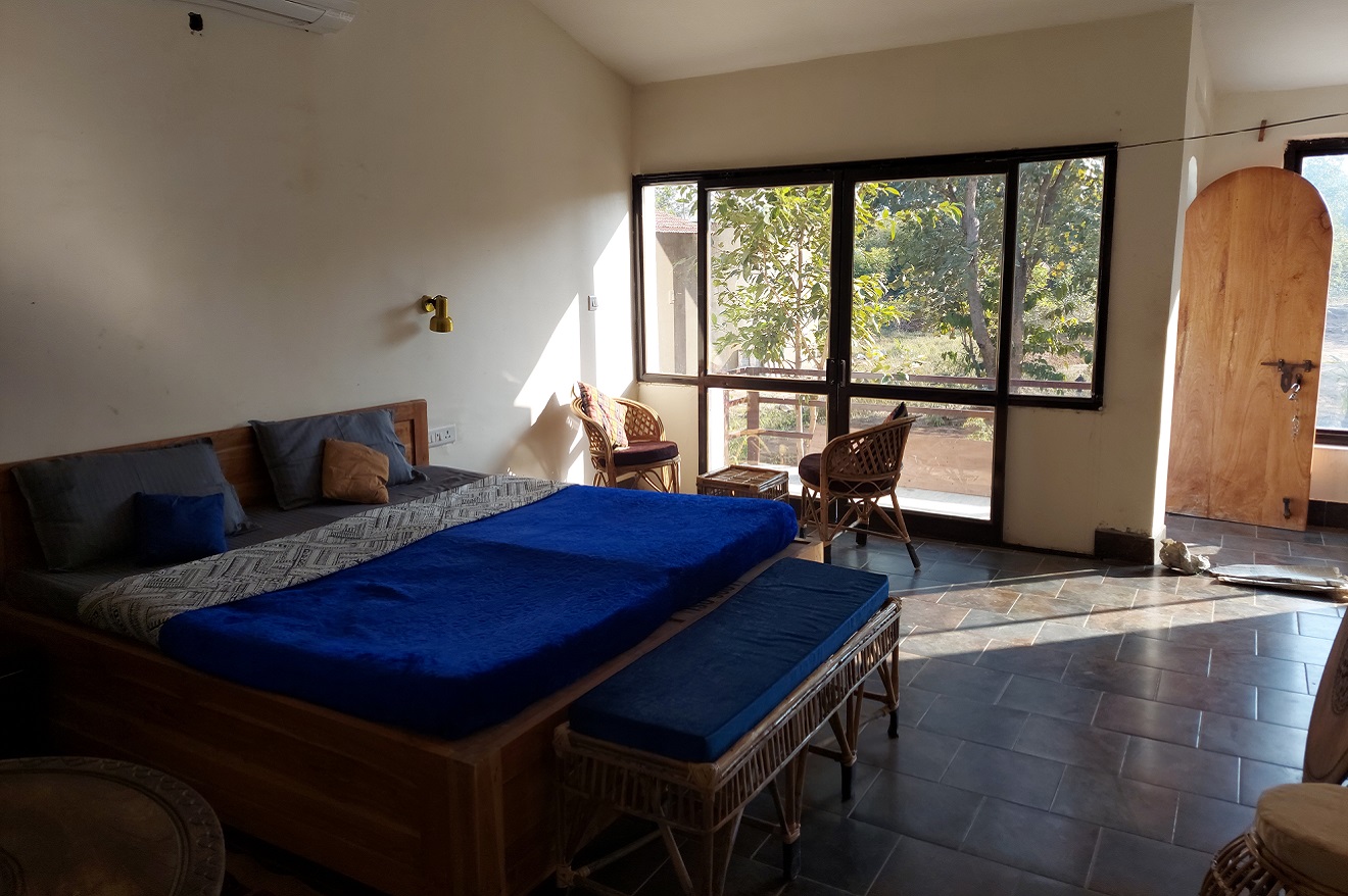 We have well planned spacious independent cottages with en-suite bathrooms. Each room is beautifully furnished with exquisite rustic furniture, ensuring exotic ambience with modern amenities, large windows and doors overlooking the forest area giving a thrilling experience of being inside the jungle. Cottages are designed to enhance the relaxed atmosphere and privacy, ensuring a holiday mood. Each room is having a private sit out, having a magnificent view of the Bandhavgarh national park and Vindhyachal ranges, ensuring rest and relaxation, can enjoy lungs full of aromatic fresh air of the jungle. At night the clear starry sky with the moon rising, in the back drop of the forest trees is a treat to the eyes of the beholder, an experience of a lifetime.